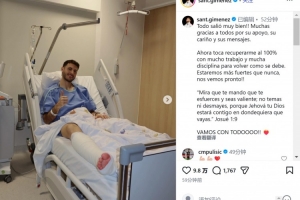 希门尼斯写道:一切进展顺利!非常感谢大家的支持、关爱和留言。现在,我将全力以赴恢复到100%的状态,通过辛勤的努力和严格的自律以最佳状态回归。我们会比以往任何时候都更加强大,很快再见!