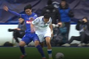 比赛第34分钟,南野拓实在与欧塞尔球员的一次对抗中撞到左膝,随后倒地不起被担架抬出场外,期间南野拓实一直双手掩面,神情相当痛苦。