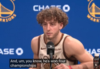 记者提到追梦和科尔发生了冲突且追梦经常发脾气被驱逐,对此波杰姆斯基表示:“追梦作为球队的领袖之一,他用不同的方式来带动我们,虽然现在的成绩并不是我们理想的状态。有时他激励队友的方式可能比较特殊,他已经赢得了4次NBA总冠军,所以我们信任他。”波杰姆斯基表示。