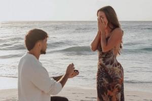 体育资讯12月24日讯 昨日,伍小海和女友发布社媒晒出组图,两人在海边幸福相拥,镜头记录下了伍小海求婚的浪漫一幕。