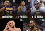 一阵:库里、科比、詹姆斯、杜兰特、邓肯;