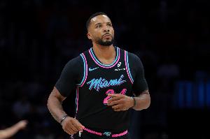 本场比赛,热火后卫鲍威尔出场34分钟19投8中,三分12中4、罚球2中1拿到全队最高21分外加7篮板2助攻3抢断,正负值-4。