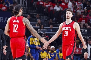 此役,火箭内线申京开场便崴脚伤退,另一名内线亚当斯则因脚踝伤势缺阵。