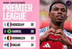 Opta Analyst统计了阿森纳队史在英超联赛里进球最多的后卫: