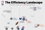 横轴代表进攻效率,越靠右越好,纵轴代表防守效率,越靠上越强。第一象限的球队多为发挥出色的球队,而在第三象限的球队通常为战绩比较糟糕的球队。