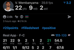 NBA杯西部决赛,马刺111-109击败雷霆,晋级总决赛!文班亚马出战20分钟,11中6,其中三分1中1,罚球12中9,得到22分9板2助1断2帽,马刺赢了2分,但是文班的正负值+21。